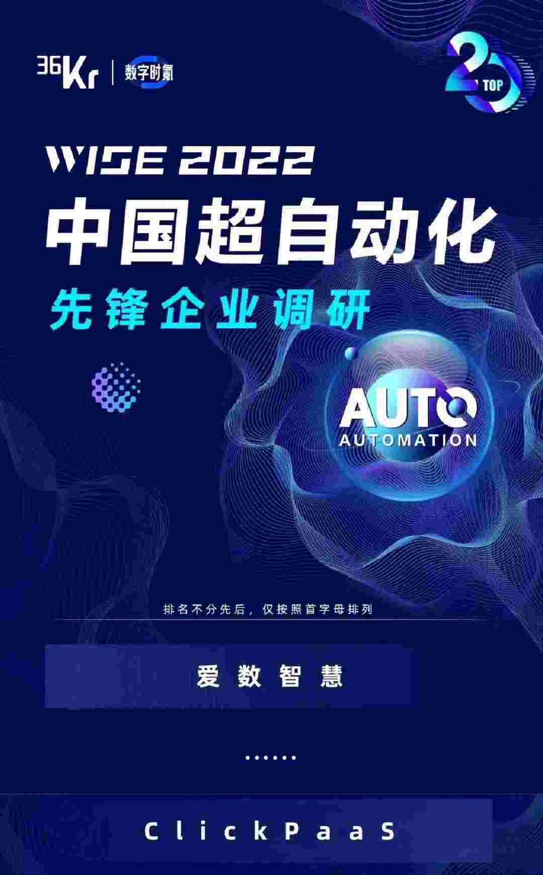 8月10日,,,,由36Kr主办的WISE 2022中国超自动化峰会在杭州成功举办。。小米钱包作为国内低代码PaaS平台的领军企业,,,,凭借过硬的技术实力和优质的产品能力,,,在本次峰会中实力入选「2022年中国超自动化先锋企业」20强。。